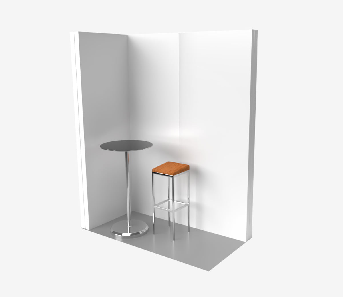 Stand semi-îlot 1 x 1 m, format compact pour points de vente et promotions.