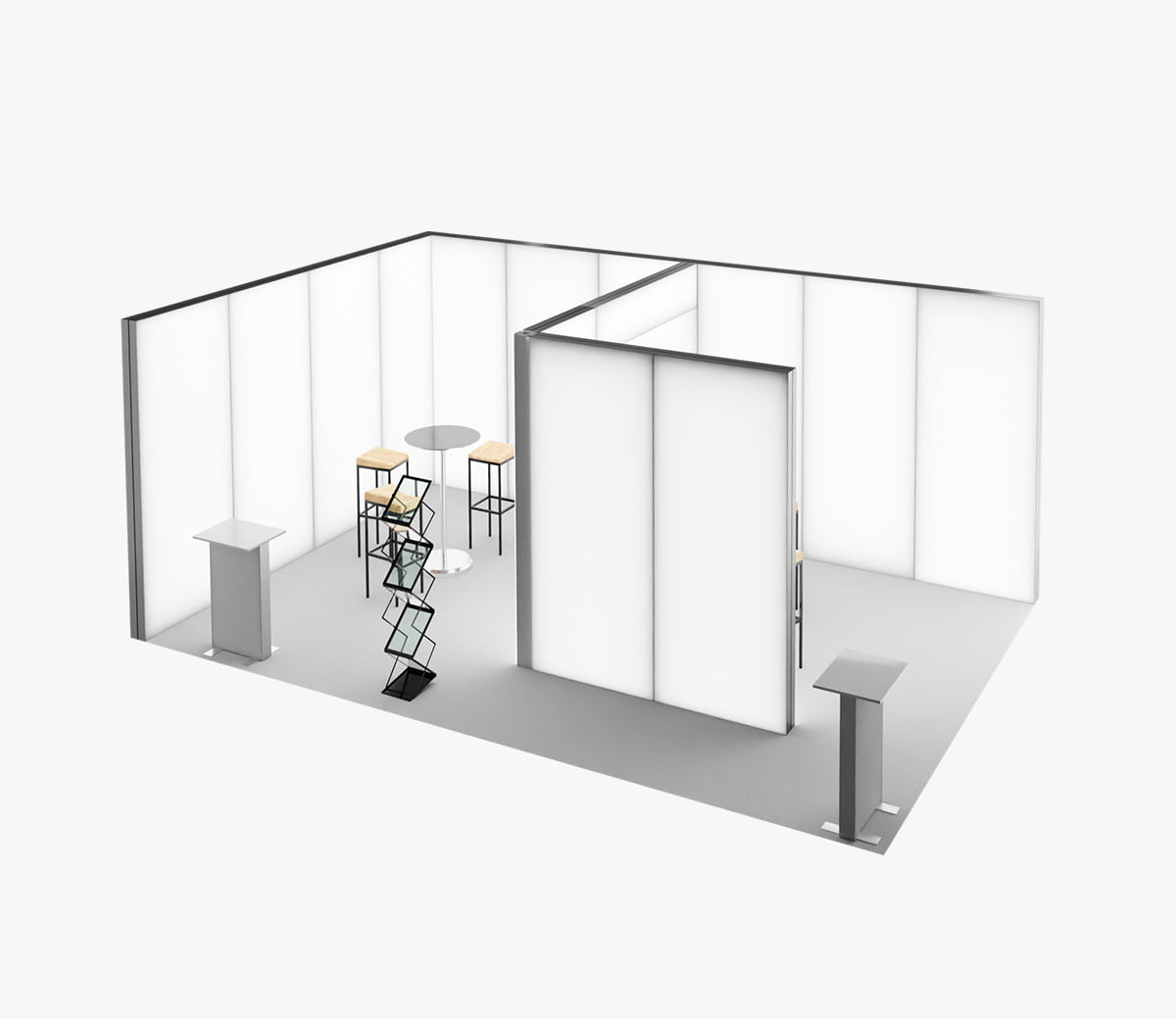 Stands semi-îlot, en L et en U pour vos espaces promotionnels.